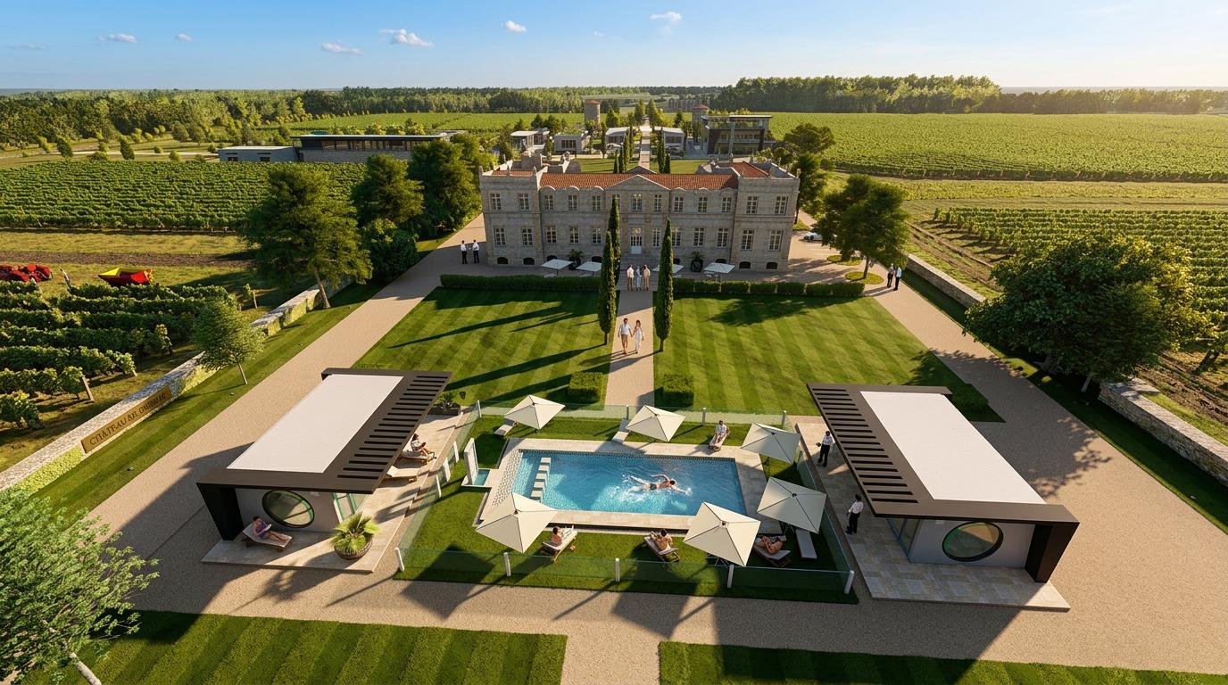Etude design extérieur et intérieur d'un domaine viticole à Bordeaux.