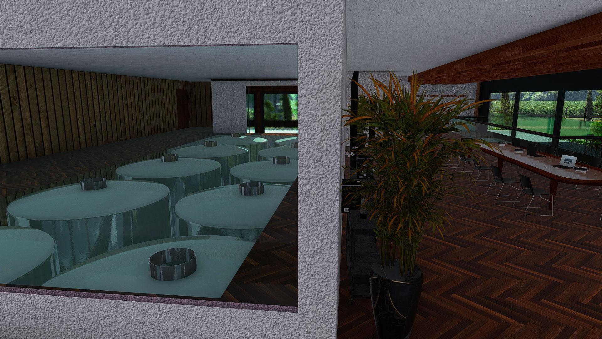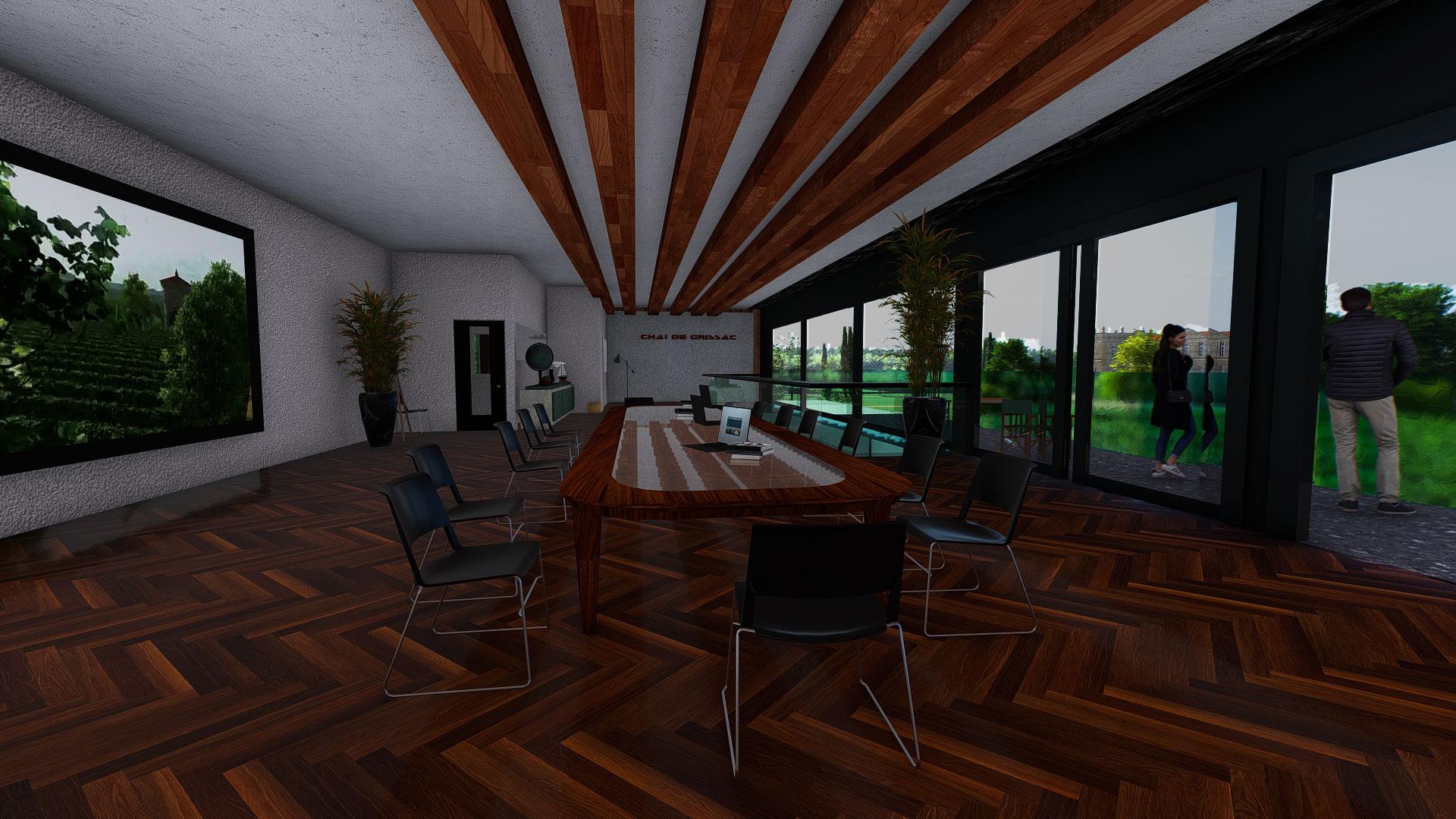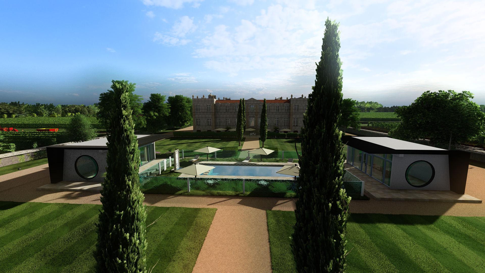Etude design extérieur et intérieur d'un domaine viticole à Bordeaux.