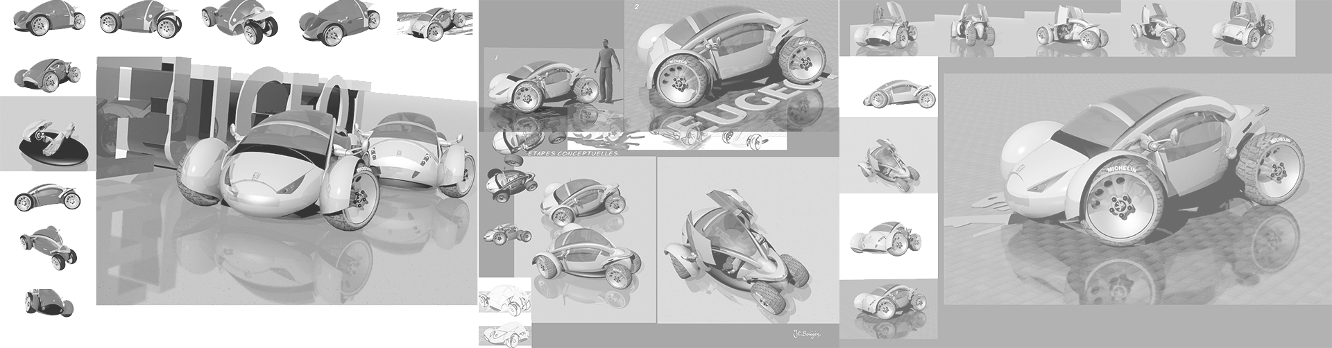 Recherche. Electric car - design - modelage 3D différents concepts. JC.Bougès.Fin années 90 début 2000.