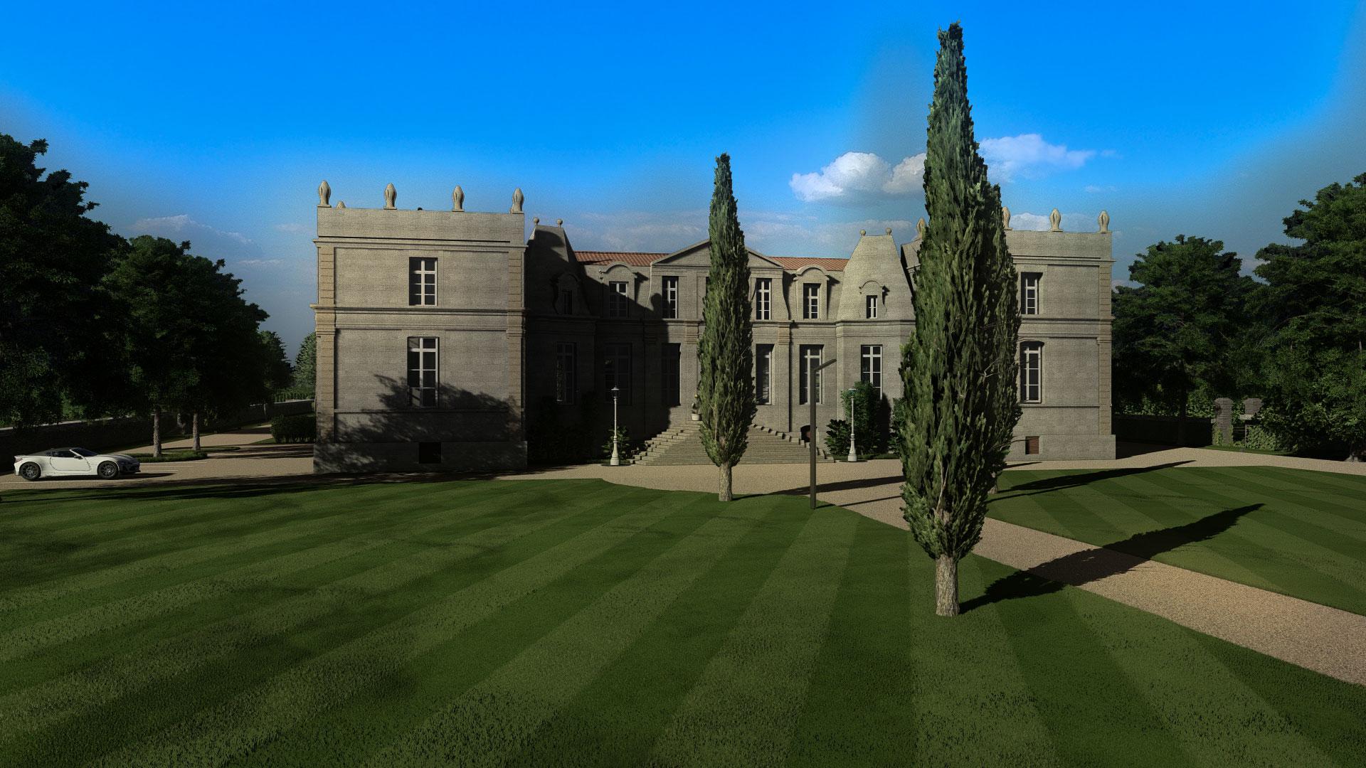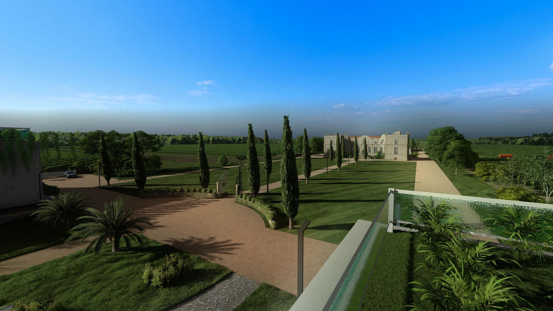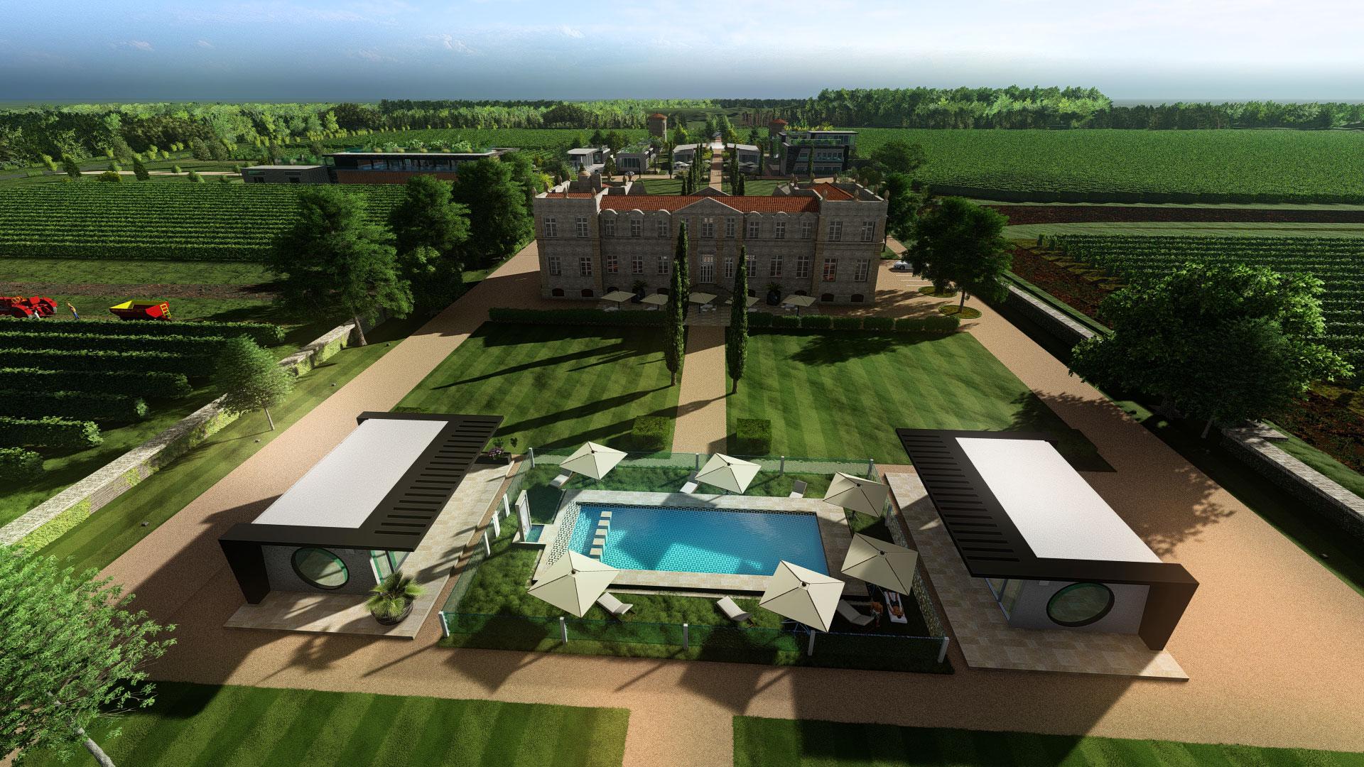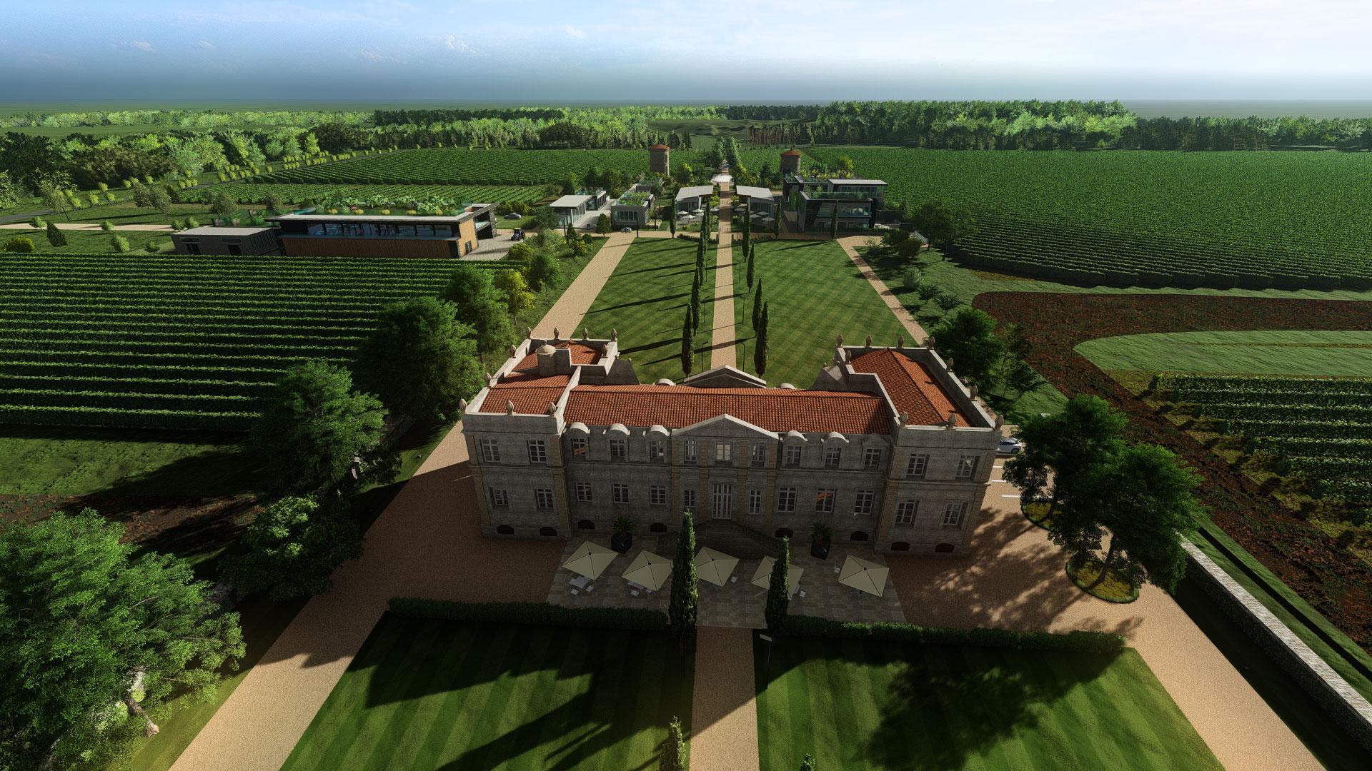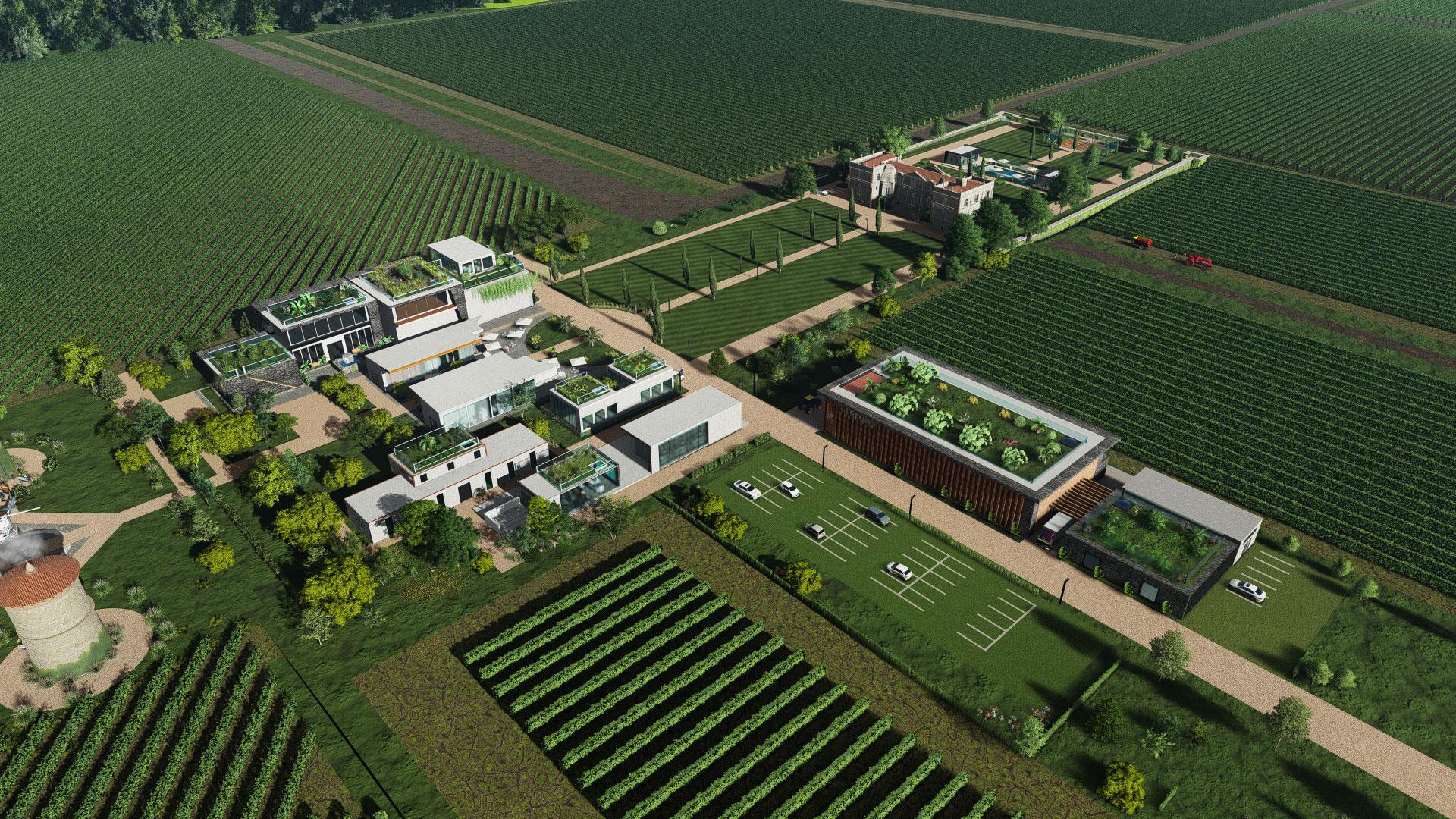Etude design extérieur et intérieur d'un domaine viticole à Bordeaux.